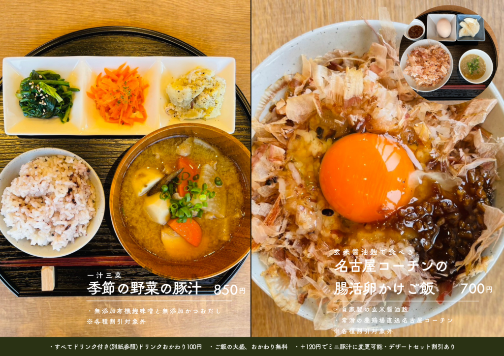 ◆醤油麹で食べる名古屋コーチンの卵かけご飯定食 ¥700