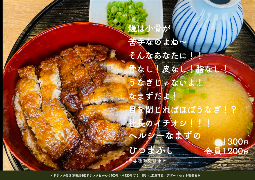 ◆社長イチオシ!ヘルシーなまずのひつまぶし ¥1300 ※¥1200
